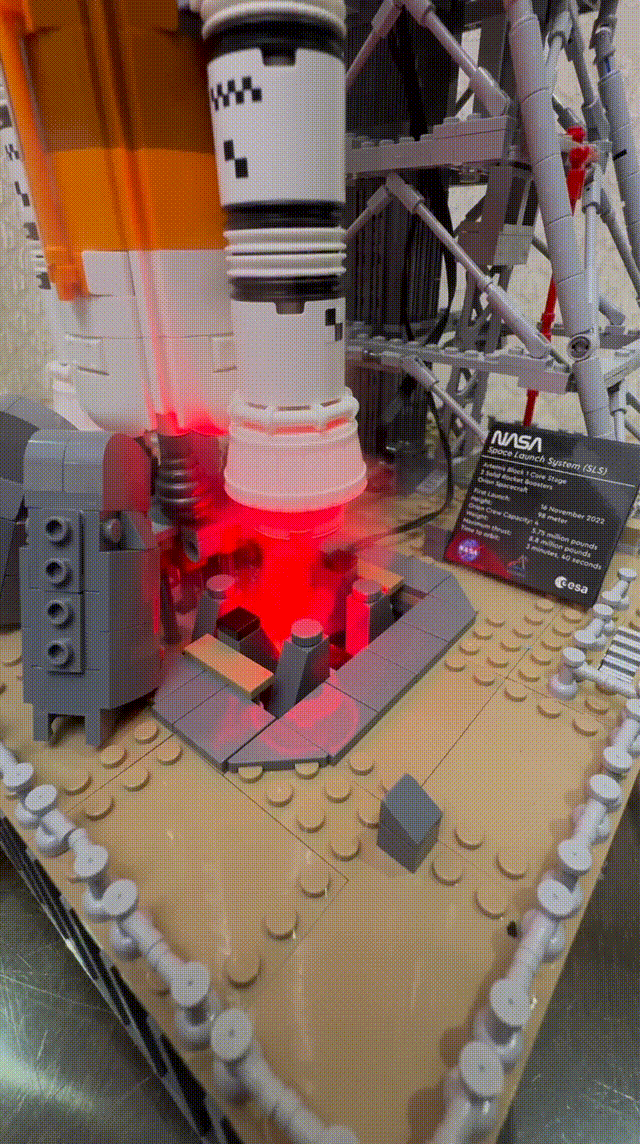 10341 NASA Artemis 太空发射系统不仅能模拟火箭发射时的发射架开启、火箭上升,还具备发光、发烟效果;